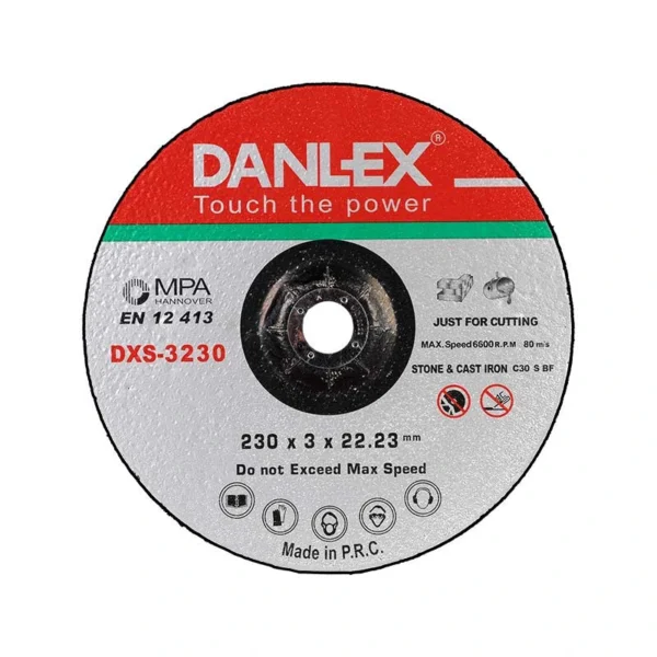 صفحه سنگبری DXS-3230 دنلکس با ابعاد 22.23×3×230 میلیمتر یک صفحه برش بزرگ محسوب می‌شود. ضخامت 3 میلیمتری برشی عمیق و دقیق روی انواع سطوح سنگی و چدنی ارائه می‌کند. این صفحه برش دنلکس با سرعتی معادل 80 متر بر ثانیه، می‌تواند تا 6600 دور در دقیقه بچرخد. در واقع 6600 دور در دقیقه، سرعت در حالت آزاد این صفحه است. این محصول بر اساس استاندارد MPA HANNOVER تولیده شده است و مانند دیگر محصولات دنلکس از کیفیت بالایی برخوردار است.