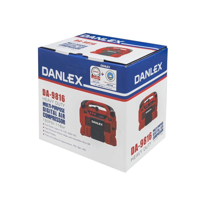 “مینی کمپرسور سه کاره دنلکس دیجیتال فندکی و برق شهری مدل DA-9816” یک ابزار کاربردی، هوشمند و قابلحمل برای تامین باد در شرایط مختلف است. این دستگاه با قابلیت استفاده همزمان از برق خودرو (12 ولت DC) و برق شهری (220 ولت AC)، گزینهای ایدهآل برای استفاده در سفر، خودرو، منزل و کارهای روزمره به شمار میرود. طراحی دیجیتال، دقت بالا و امکانات ایمنی متنوع، این کمپرسور را به یک همراه مطمئن در موقعیتهای مختلف تبدیل کرده است.